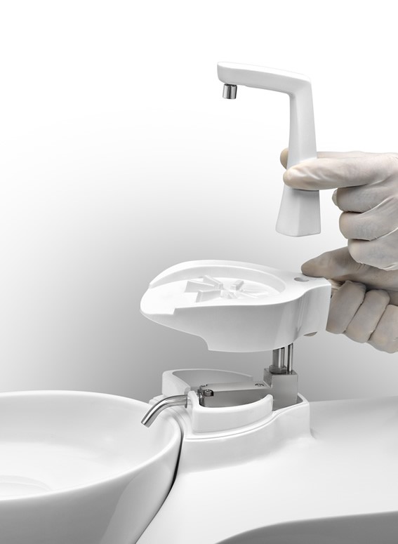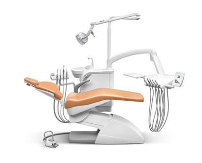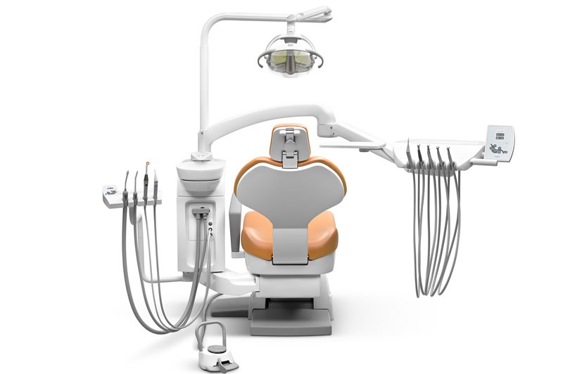 یونیت دندانپزشکی متصل به صندلی، 5 شیلنگ بازوئی یا آویز (انتخابی) شامل 4 خروجی برای اینسترومنتها و 1 عدد سرنگ آب و هوا